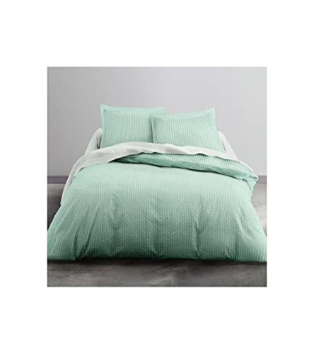 Parure de Couette 240x260 cm – 3 pièces – Percale de Coton Douce – Housse + taie – Blanc & Vert d'eau – Modèle La Marquise