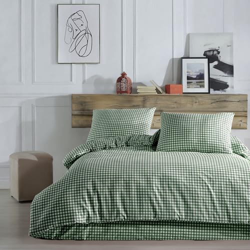 Terre de Nuit - Parure de lit Vichy 240x220 Vert foncé - Vert - Carreaux - 57 Fils/cm² - Base Droite