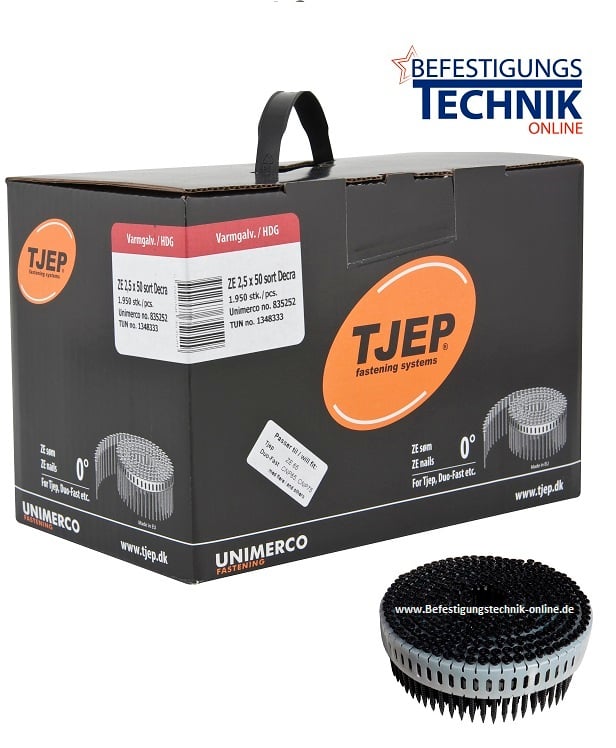 Clous pour bobines ZE 2,5x50mm anneau galvanisé à chaud NOIR 0° Tjep ZE 65 Cloueur pour bobines Paslode Duo Fast CPN65 FR