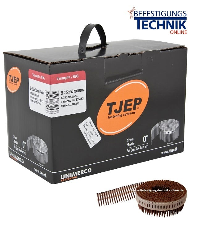 Clous pour bobines 2,5x50mm anneau galvanisé à chaud ROT 0° Tjep ZE 65 Cloueur pour bobines Paslode Duo Fast CPN65 DEKRA I