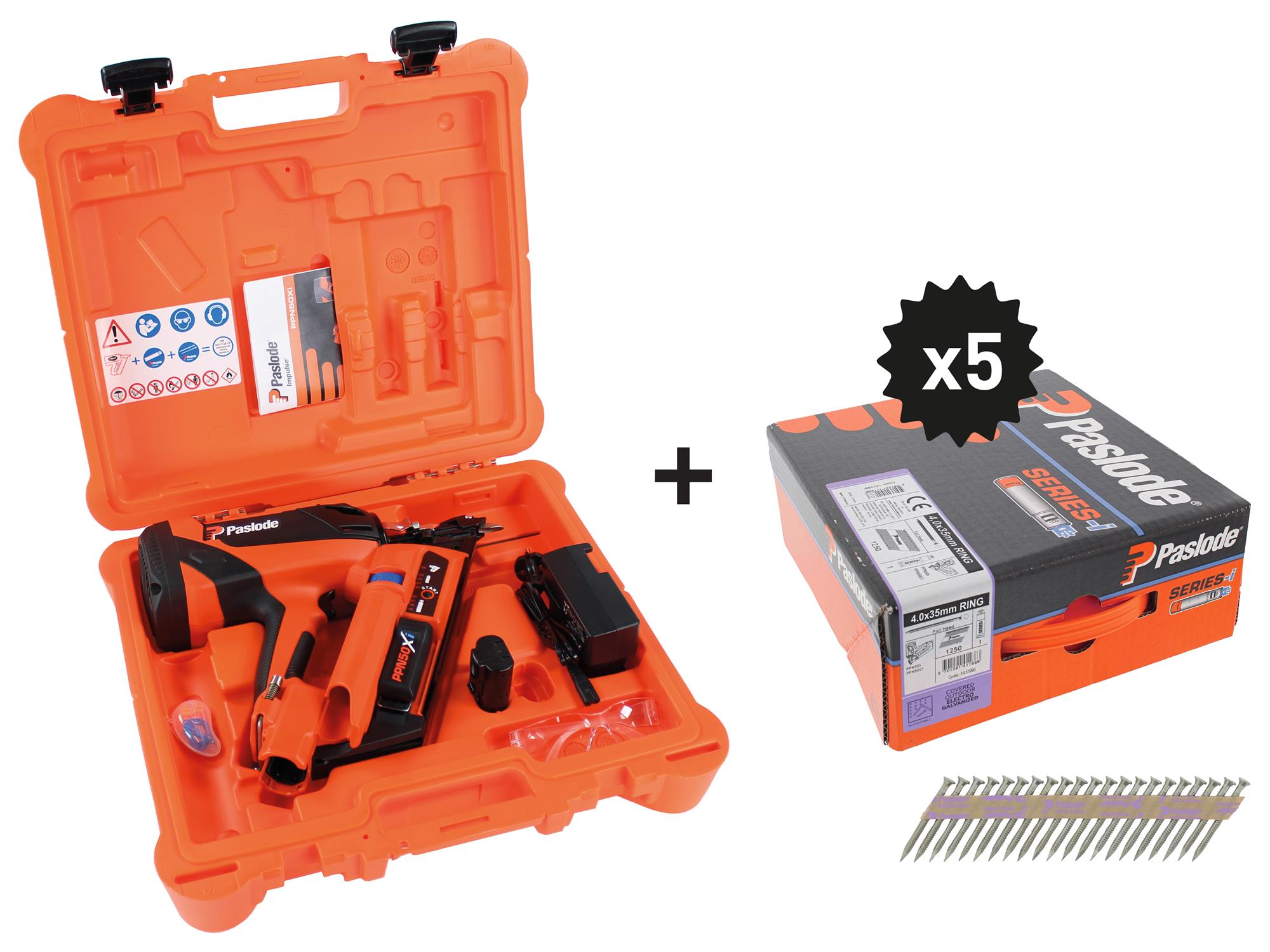 Cloueur Paslode IM90Xi SPIT en mallette + batterie et chargeur + 5 packs 2,8x70 crantés - 054696