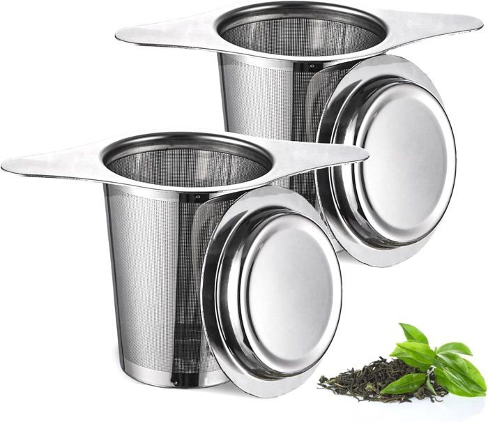 2PCS filtre a the avec Poignées & Couvercle infuseur à thé filtre the pour tasse passoire à thé thé infuseur infuseur thé