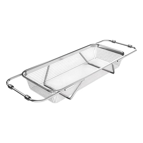 Genérico Passoire sur évier - 29,5-40,5 x 21 x 5,5 cm | Panier égouttoir extensible en acier inoxydable, passoire réglable, filtre alimentaire à mailles fines, passe au lave-vaisselle, légumes, fruits