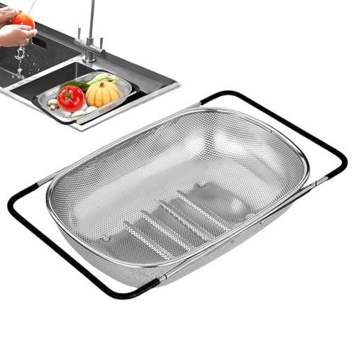 Generisch Au-dessus de la passoire d'évier | Panier en acier inoxydable extensible | Panier égouttoir de cuisine à mailles fines pour riz, céréales, pâtes, fruits, baies, lavage, cuisine