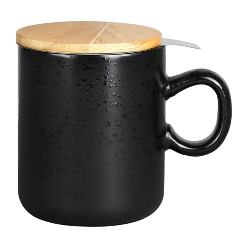 Geneviève Lethu 536233 Tisanière 45 cl en Grès avec infuseur - Tasse à thé, tisane avec couvercle en Pin et passoire inox - Noir Mat collection Minuit