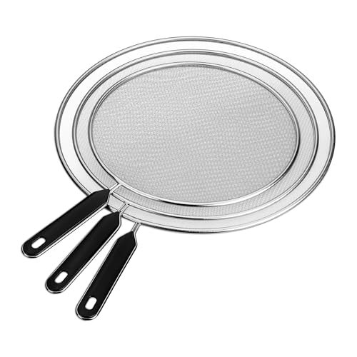 Relaxdays Protection Anti-éclaboussures pour poêles, Lot de 3, passoire INOX, ∅ 25, 29 et 33 cm, Noir