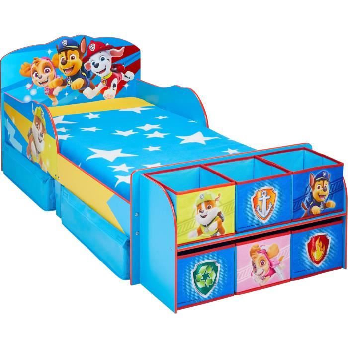 ROBA Pat Patrouille Coffre à Jouets en Bois - Couvercle Rabattable - Motif des Chiens - Gris - Blanc