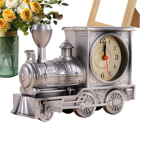 Generico Vintage Train Clock, Battery Powered Desk Timepiece, 7,08 x 2,36 Inches Alarm with Silent Movement, ABS Table Decor, Retro Engine with Classic Style, Home Clock for Bedroom Office