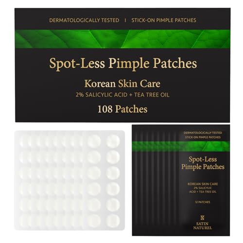 Satin Naturel 108 Patches Anti-Acné 2% Acide Salicylique + Tea Tree Oil & Acide Hyaluronique – Coreen Skincare Pimple Patch Anti Point Noir – Traitement Ciblé pour Boutons et Imperfections