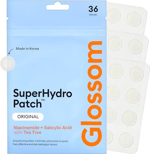 Glossom SuperHydro Patch – Patch Bouton Anti-Imperfections Invisible – Skincare Anti-Acné – Correcteur Boutons et Acné – Résultats Rapides – Hydrocolloïde à l’Acide Salicylique Pimple Patches x36