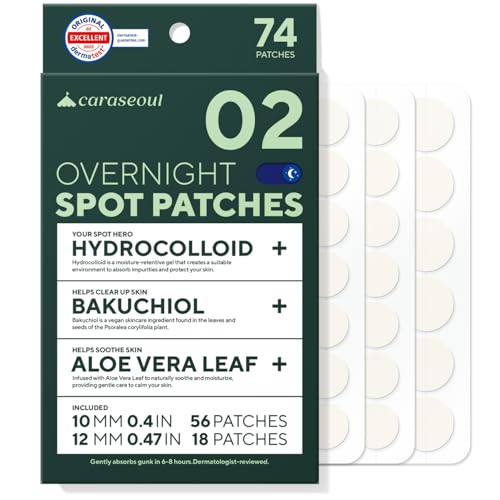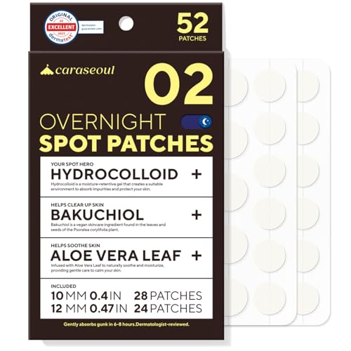 caraseoul Patch Boutons Nuit – Hydrocolloïde Épais, Forte Adhésion, 2 Tailles, Bakuchiol & Aloe Vera, Soin Coréen Anti-Imperfections, Testé Dermatologiquement