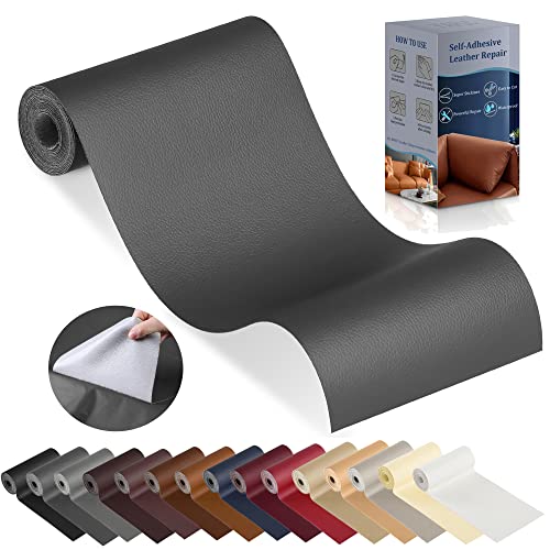 MICTER Patch de Réparation en Cuir, 40 x 300cm Patch Cuir Auto-adhésif Rénovation, Cuir Adhesif Reparation Canapé Pour Réparation et Rénovation de Canapé, Siège, Vestes, Artisanat (Gris Foncé)