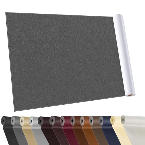 YAFLC Patch de Réparation en Cuir Gris Foncé, 40x80cm Auto-adhésif pour Rénovation, Simili Cuir Autocollant pour Canapé, Siège de Voiture, Meubles, Vestes, Sac