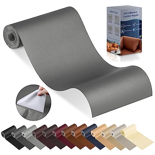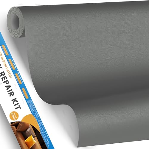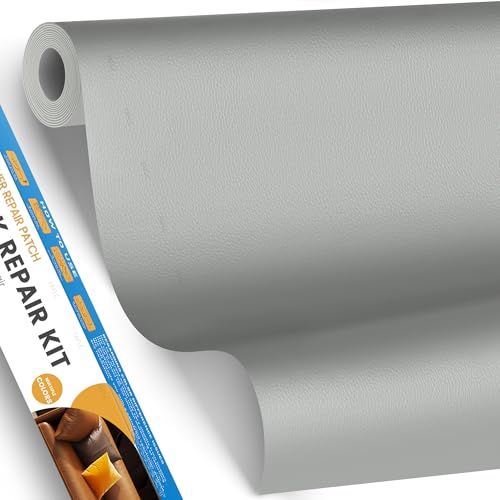 YAFLC Patch de Réparation en Cuir Gris 40x160cm, Auto-adhésif Simili Cuir pour Canapé, Siège de Voiture, Meubles, Vestes et Sac