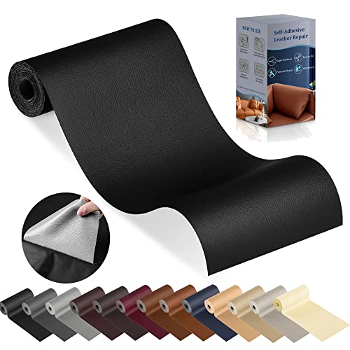 MICTER Patch de Réparation en Cuir 40 x 300cm Auto-adhésif Pour Rénovation de Canapé, Siège, Vestes, Artisanat (Noir)