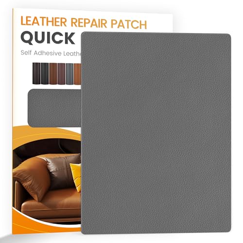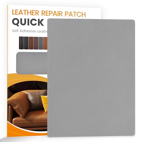 YAFLC Patch de Réparation en Cuir Gris, 21x28cm Patch cuir Auto-adhésif Rénovation, Simili Cuir Autocollant pour Canapé de Siège de Voiture Meubles Vestes Sac