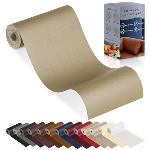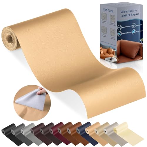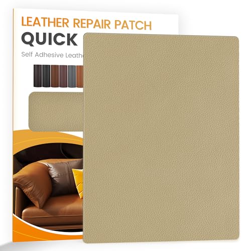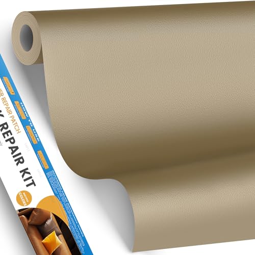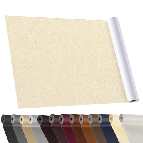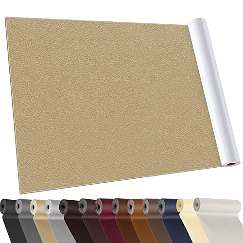 YAFLC Patch de Réparation en Cuir Beige Moyen, 40x80cm Auto-adhésif pour Rénovation, Simili Cuir Autocollant pour Canapé, Siège de Voiture, Meubles, Vestes, Sac