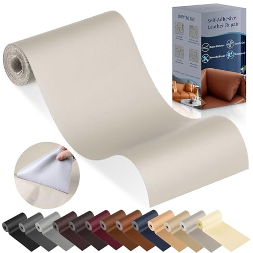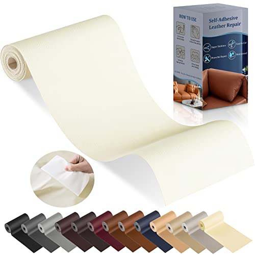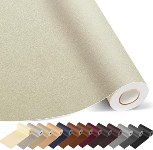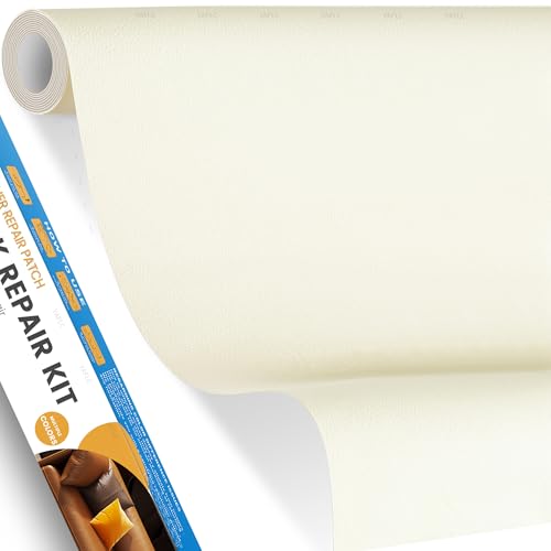 MICTER Patch de Réparation en Cuir Auto-adhésif 15 x 300cm - Pour Rénovation de Canapé, Siège, Vestes, Artisanat (Blanc Beige)