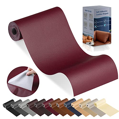 MICTER Patch de Réparation en Cuir 40 x 200cm Auto-adhésif Pour Rénovation de Canapé, Siège, Vestes, Artisanat (Rouge Vin)