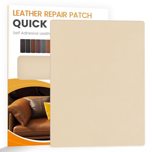YAFLC Patch de Réparation en Cuir Beige, 21x28cm Patch cuir Auto-adhésif Rénovation, Simili Cuir Autocollant pour Canapé de Siège de Voiture Meubles Vestes Sac