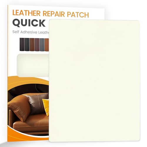 YAFLC Patch de Réparation en Cuir Blanc laiteux, 21x28cm Patch cuir Auto-adhésif Rénovation, Simili Cuir Autocollant pour Canapé de Siège de Voiture Meubles Vestes Sac