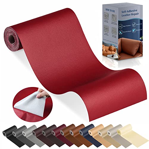 MICTER Patch de Réparation en Cuir Auto-adhésif 15 x 200cm - Pour Rénovation de Canapé, Siège, Vestes, Artisanat (Rouge Vin)