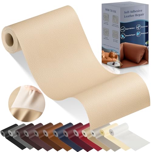 YAFLC Patch de Réparation en Cuir Beige, 10x160cm Patch Cuir Auto-adhésif Rénovation, Simili Cuir Autocollant pour Canapé de Siège de Voiture Meubles Vestes Sac
