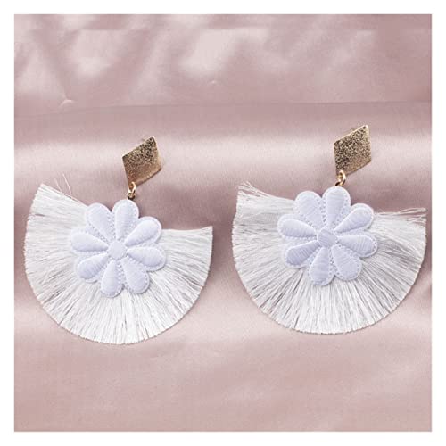 Boucles d'oreilles pour Femmes, chrysanthème créatif, pièce de Fer, Pompon, Patch en Tissu, Boucles d'oreilles pour Dames