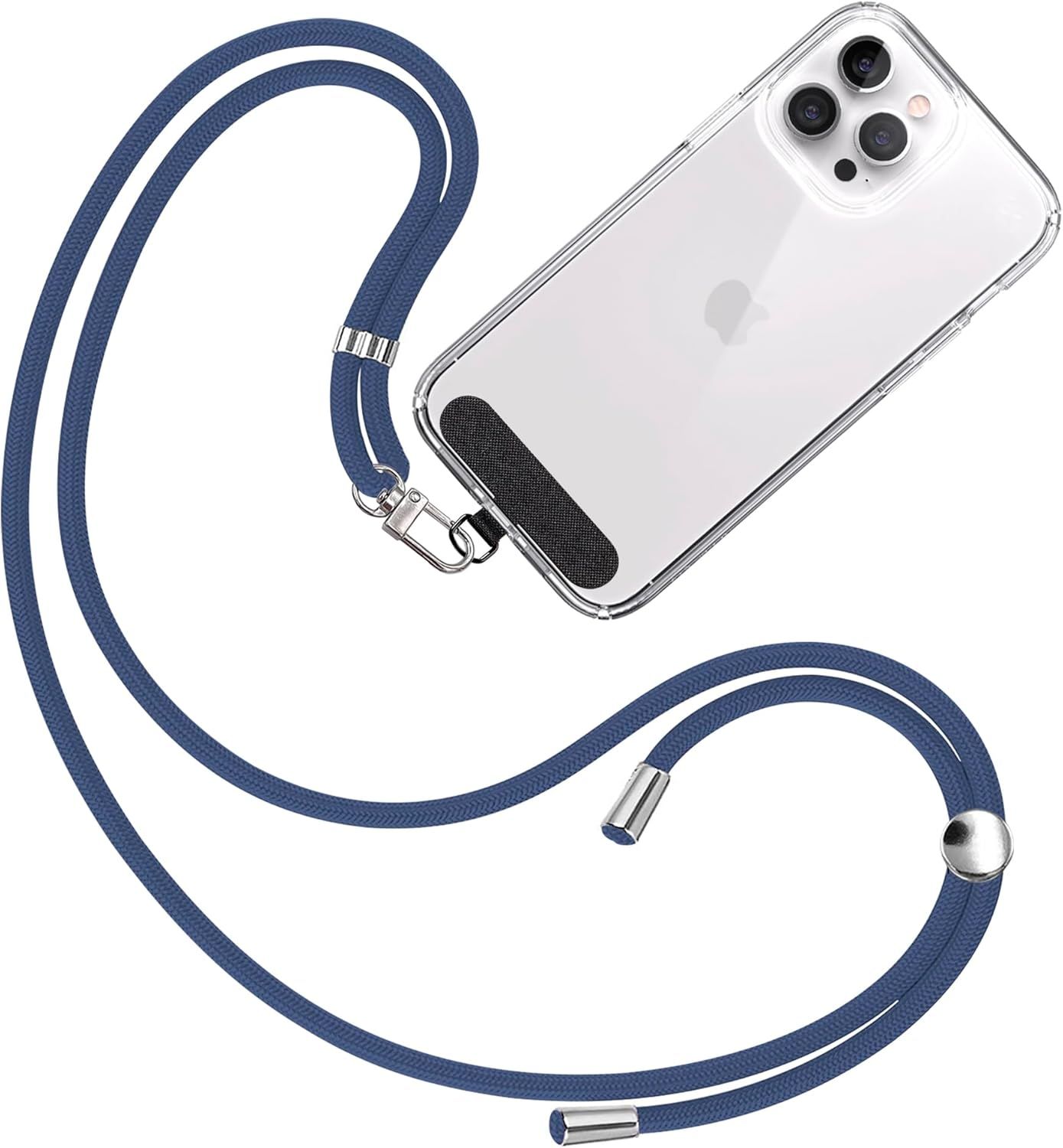 Cordon Telephone Portable Avec Patch De Fixation En Tissu [Noir] Chaine Telephone Portable Ajustable Et Résistant Compatible Avec Toutes Les Marques De Téléphones Mode Homme Et Femme
