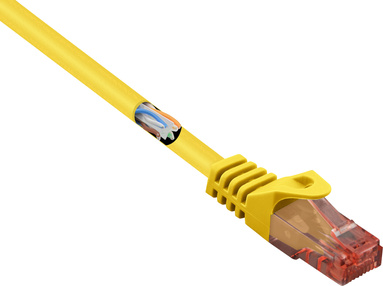 PYTHON® Series Câble patch RJ45 avec Cat. 7 câble brut, protection de nez d'encliquetage (RNS®) et tresse en nylon, S/FTP, PiMF, sans halogène, 500MHz, OFC, jaune, 15m - [8070PY-150Y]