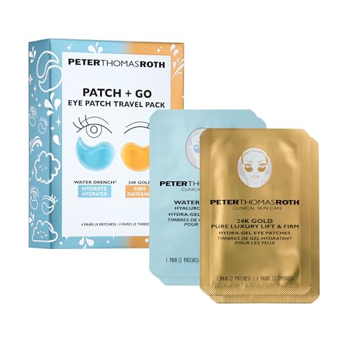 Peter Thomas Roth Coffret Holiday – Hydra-Gel Travel Pack 4 Paires (2x Water Drench + 2x 24K Gold) – Patchs Yeux de Luxe à l’Acide Hyaluronique, Collagène & Caféine – Hydratant, Raffermissant & Éclat
