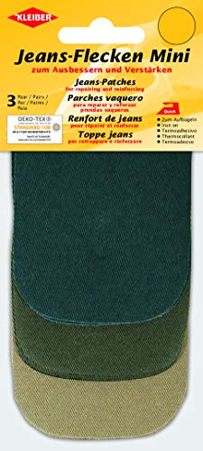 Kleiber 9 x 7 x 0,3 cm Mini thermocollant Jeans Patchs de réparation, Lot de 6, Vert/Olive/Beige