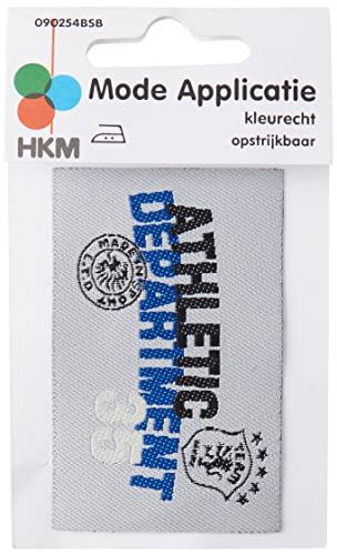 HKM Patchs thermocollants Athletic Department - 49 mm de Longueur x 79 mm de Largeur - Bleu/Blanc/Noir