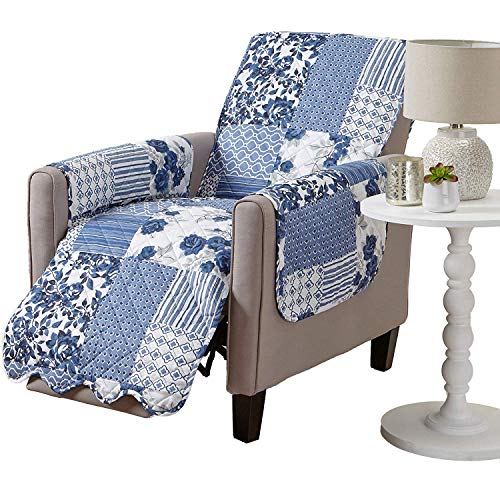 Great Bay Home Patchwork festonné imprimé Protecteur de Meubles résistant aux Taches pour Fauteuil inclinable (Fauteuil inclinable, Bleu Marine)