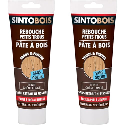 SINTO Pâte à Bois Pour Reboucher Imperfections et Fissures Chêne Foncé - 250g - Sans Odeur - Intérieur et Extérieur (Lot de 2)