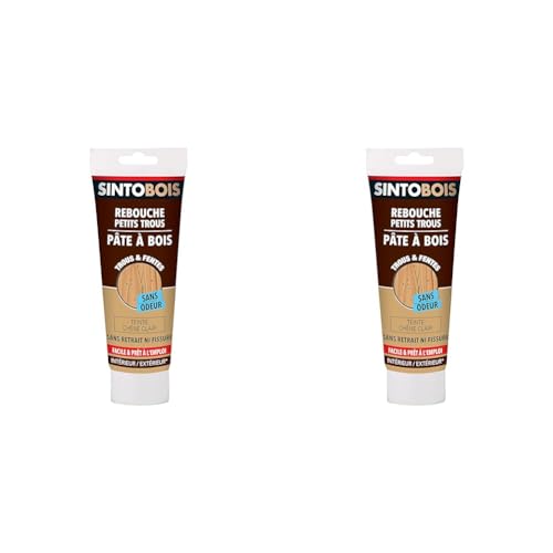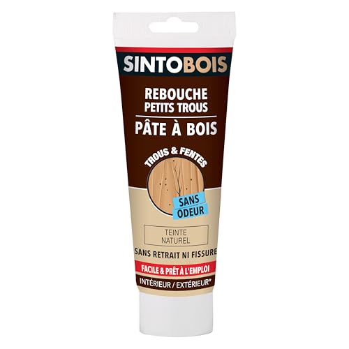 Pâte à bois - SINTOBOIS - Naturel - 80g - Réparation bois - Séchage rapide - Usage intérieur/extérieur