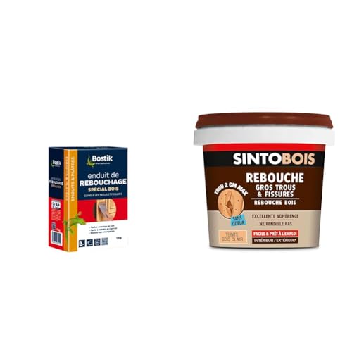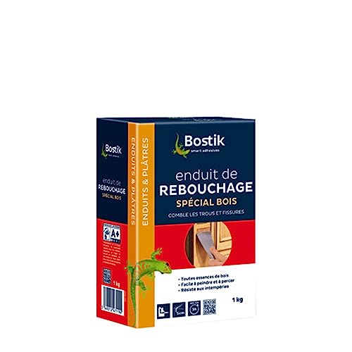 Bostik Enduit de Rebouchage Prêt à l'Emploi Spécial Bois – Pâte à Bois en Poudre – Intérieur et Extérieur – Pour Combler les Trous et Fissures Jusqu’à 5 cm – 1 Boîte 1 kg
