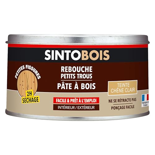 Pâte à bois - SINTOBOIS - Chêne clair - 80g - Réparation bois - Séchage rapide - Intérieur