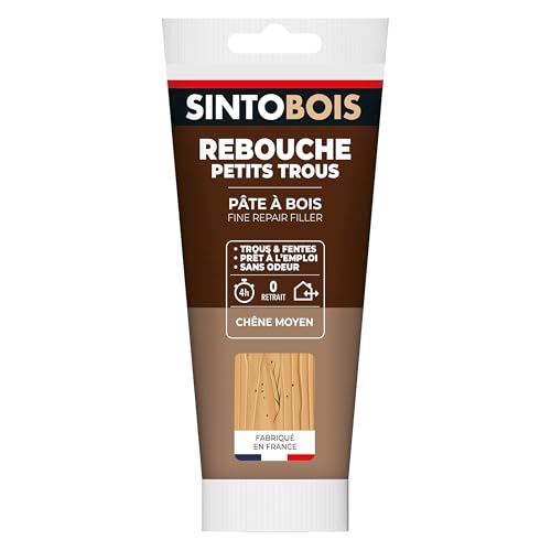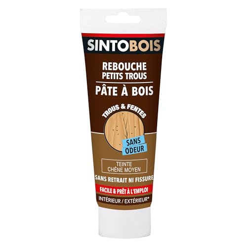 SINTOBOIS - Rebouche Petits Trous - Pâte à Bois - Prêt à l'Emploi - Sec en 2h - Formule Solvantée - Intérieur et Extérieur - Ne se Rétracte pas - Chêne Moyen - Technique Professionnelle - 80 g