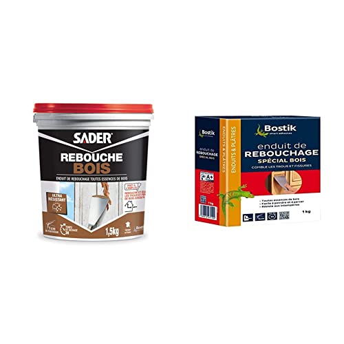 Bostik Enduit de Rebouchage Prêt à l'Emploi Spécial Bois – Pâte à Bois en Poudre – Intérieur et Extérieur – Pour Combler les Trous et Fissures Jusqu’à 5 cm – 1 Boîte 1 kg (Lot de 2)