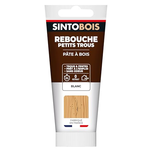 Pâte à bois à leau - SINTOBOIS - Blanc - 80g - Séchage rapide - Usage intérieur et extérieur