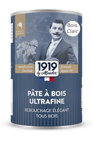 MAULER - Pâte à bois ultrafine - Pin, Bois Clair - 350 gr - PV Contact Alimentaire - Petit et gros rebouchage -Trou, fentes et fissures - Sans Odeur