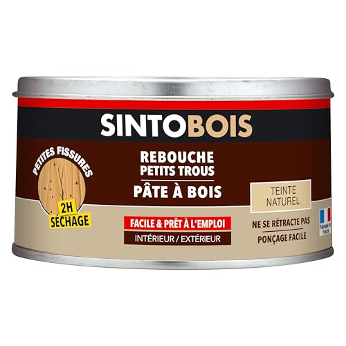 SINTOBOIS - Rebouche Petits Trous - Pâte à Bois - Prêt à l'Emploi - Sec en 2h - Formule Solvantée - Intérieur et Extérieur - Ne se Rétracte pas - Teinte Naturelle - Technique Professionnelle - 250 g