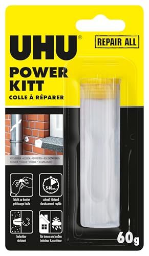 UHU Power kitt - Pâte à Réparer - Formule Epoxy Extra Forte - Tous Matériaux & Surfaces - Intérieur/Extérieur - Résistante à L'Eau - Gris - Tube de 60 g