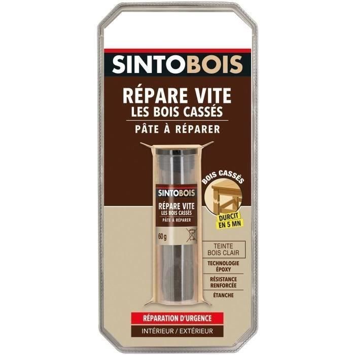 Pâte à réparer - SINTO - Répare vite bois casses - 35 g - Bois clair - Résistance aux intempéries