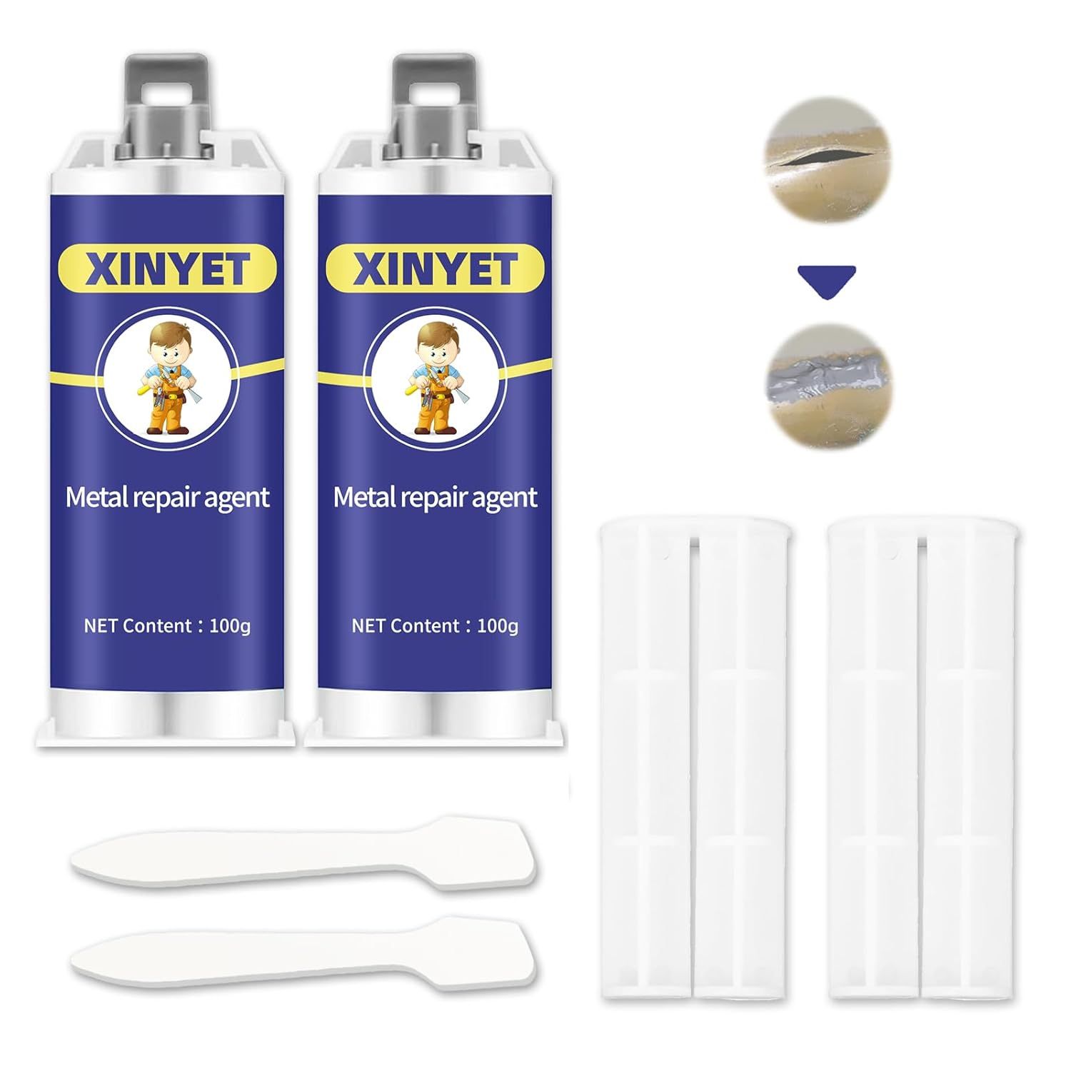 Pâte de Réparation en Métal,Glue 100g A+B,Résistant à la Chaleur Metal Repair Paste,Metal Mending Agent Metal Repair Glue (2PCS)