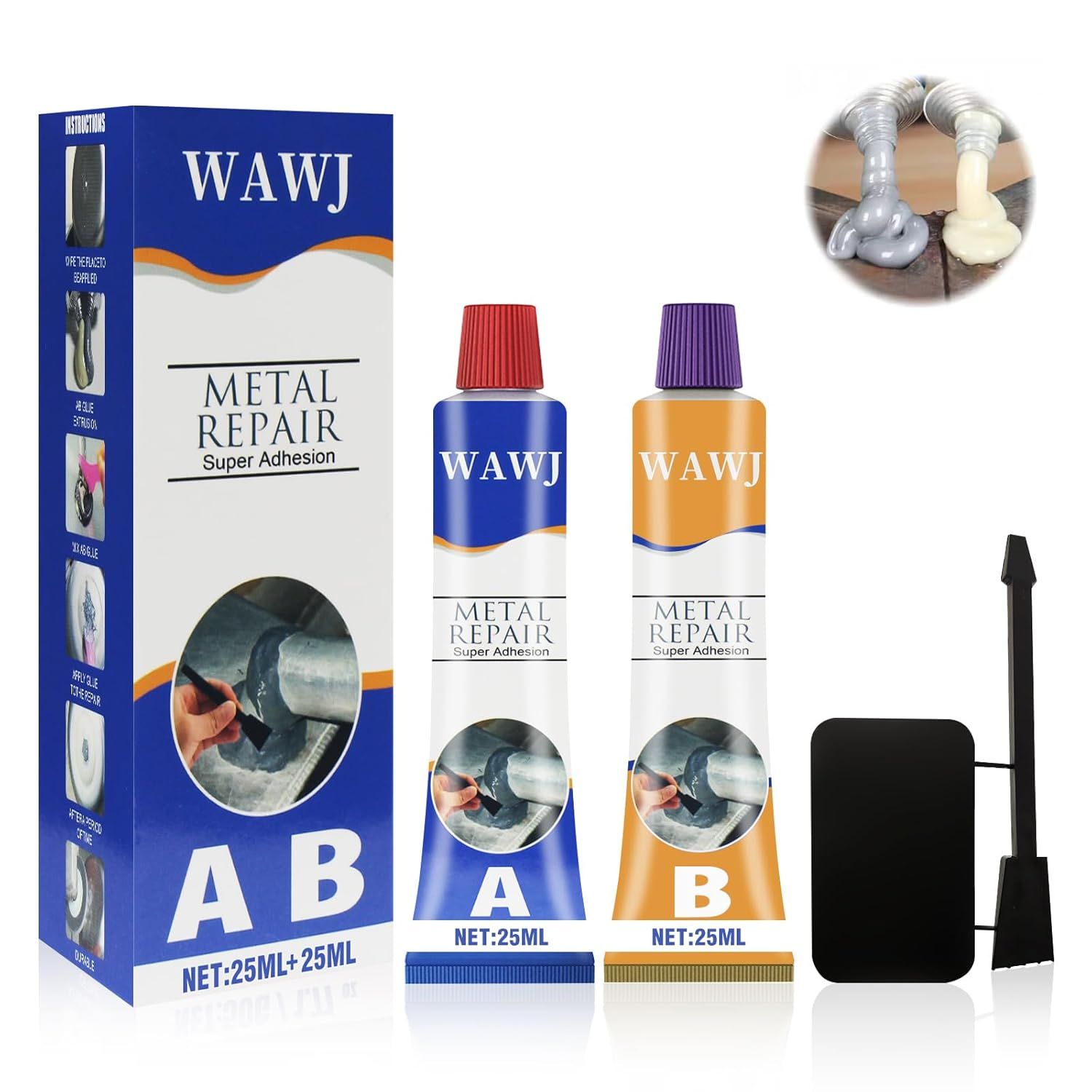 Glue,50ml Soudure Magique Colle,Pâte de Réparation en Métal Soudure à Froid Metal,Metal Mending Agent Metal Repair Glue pour Réparer Divers Défauts de Moulage (25ml * 2)