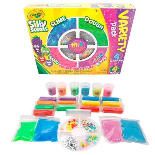 Cefa Toys - Crayola Silly Scents Mega Pack multi-activités 4 en 1-29 composants - Slime - Pâte à modeler aromatique - Sable magique - Développement de la créativité Convient aux enfants de 3 ans et