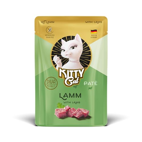 Kitty Cat Paté Agneau - 6 x 85 g - Nourriture Humide pour Chat - sans céréales - avec Taurine, Huile de Saumon et Moule à lèvres Vertes - Aliment Complet à Haute teneur en Viande - Fabriqué en