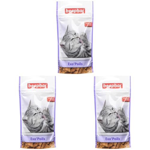 BEAPHAR – Friandises Exo'Poils au Malt pour Chat – Complément Alimentaire – Empêche la Formation de Boules de Poils et favorise Le Bien-être intestinal – Sachet refermable de 35 g (Lot de 3)
